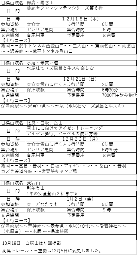 2025年は8月に木曽駒ケ岳、宝剣岳に例会山行を行う予定です。