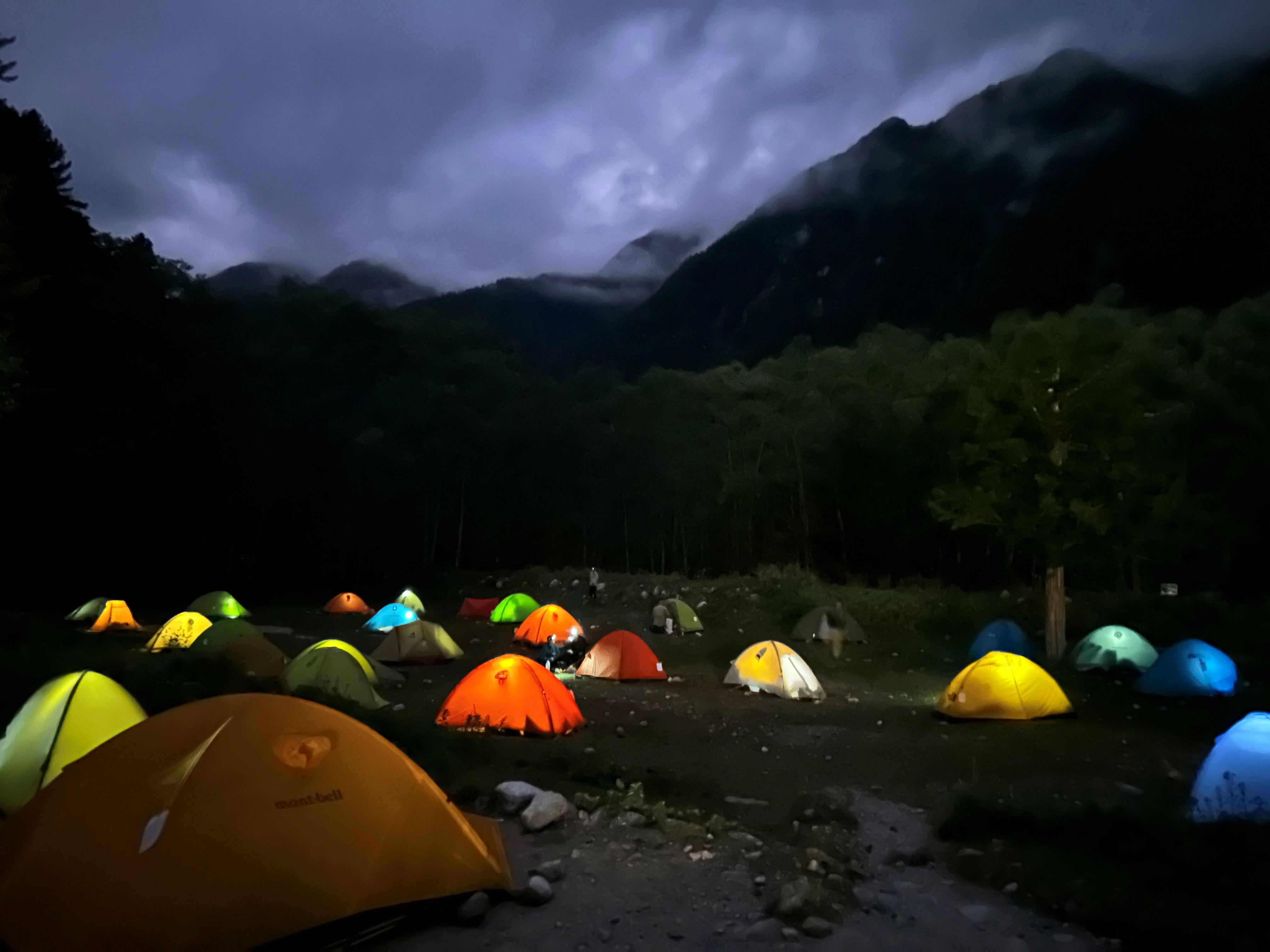 主に初心者向けのテント泊を行っています。テント泊は体力が大変必要ですので、登山口から比較的容易にアクセスできるテント場を利用することが多いです。立山の雷鳥沢や涸沢、八ヶ岳など。上高地の徳澤園でテント泊を目的にした山行も行っています。