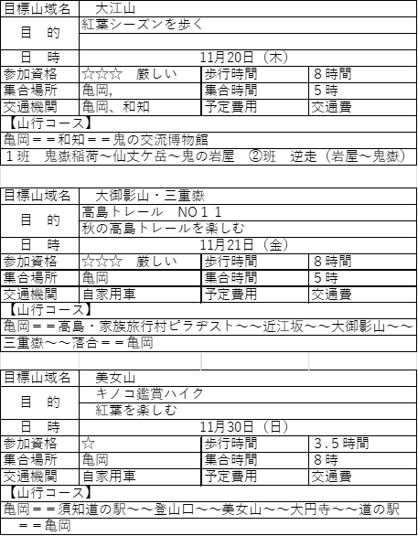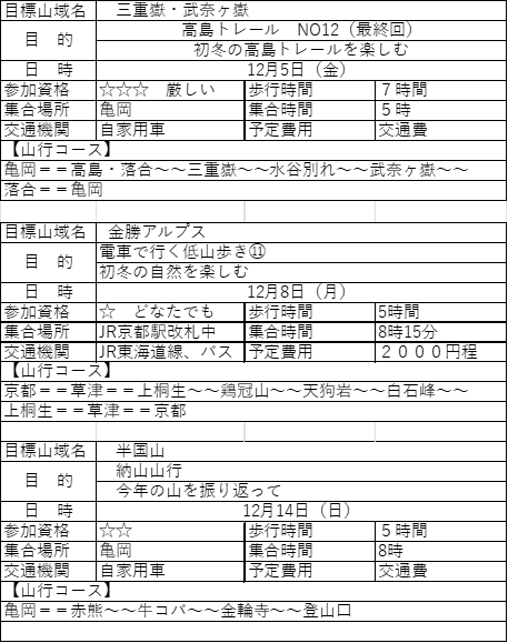 また、会員それぞれの経験や体力、知識、技術に合った山行トレーニングも行っています。